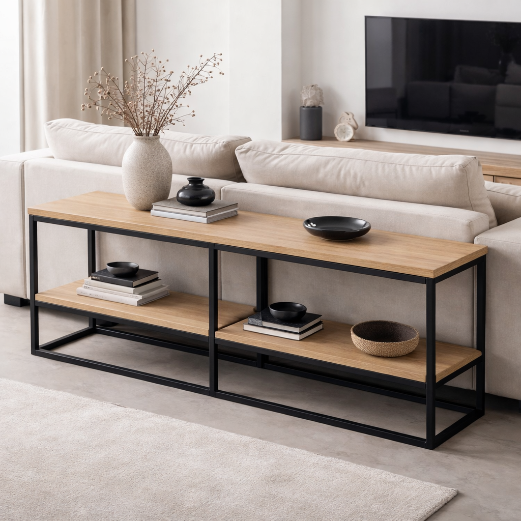 Узкий консольный столик лофт за диваном дуб сонома можно приобрести в интернет-магазине Lokos с доставкой или самовывозом по Челябинской области или доставкой до ТК с дальнейшей отправкой во все регионы Российской Федерации и СНГ.