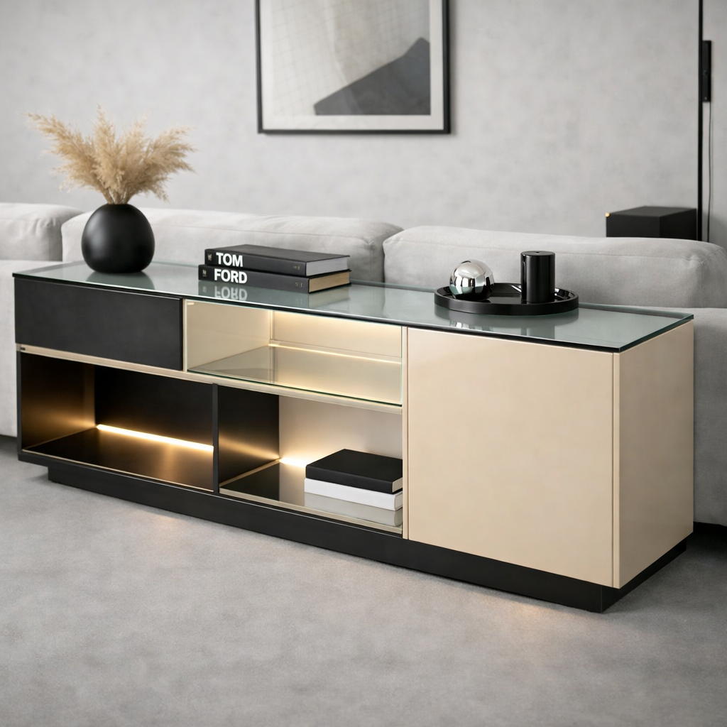 Консольный столик со стеклом бежевый глянец с подсветкой 1500×800×400 мм можно приобрести в интернет-магазине Lokos с доставкой или самовывозом по Челябинской области или доставкой до ТК с дальнейшей отправкой во все регионы Российской Федерации и СНГ.