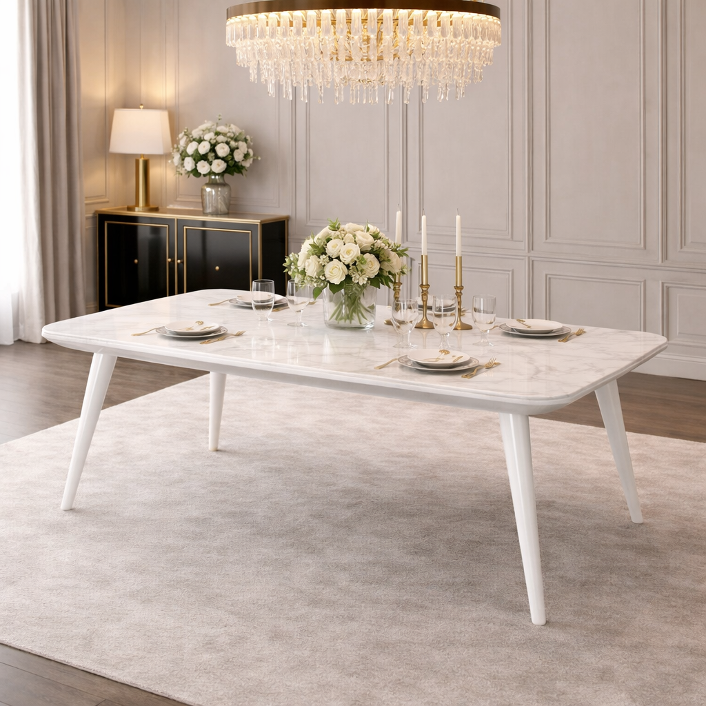 Обеденный стол белый под мрамор MarbleLux 180×90 см можно приобрести в интернет-магазине Lokos с доставкой или самовывозом по Челябинской области или доставкой до ТК с дальнейшей отправкой во все регионы Российской Федерации и СНГ.