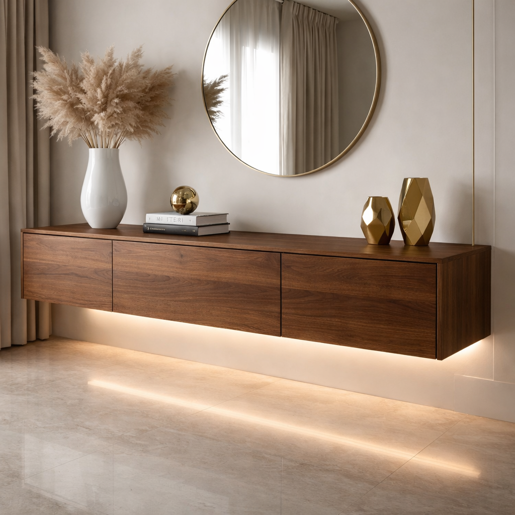 ТВ тумба подвесная под дерево с подсветкой "Walnut", 160х40 см можно приобрести в интернет-магазине Lokos с доставкой или самовывозом по Челябинской области или доставкой до ТК с дальнейшей отправкой во все регионы Российской Федерации и СНГ.