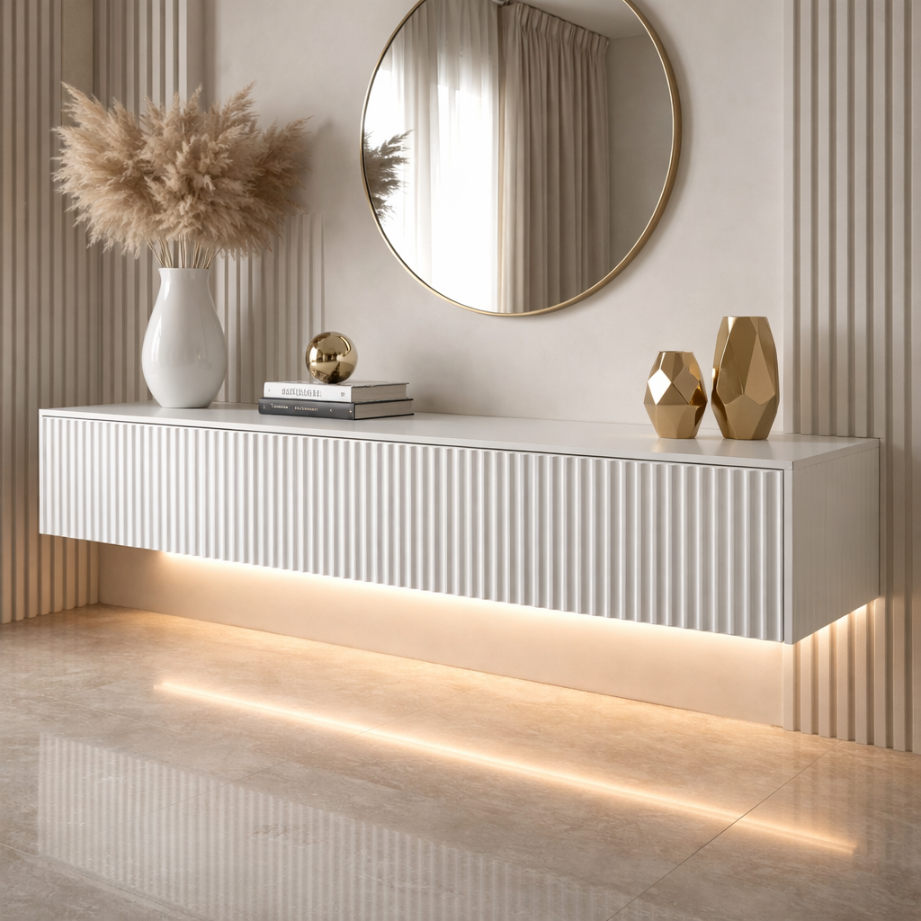 Подвесная тумба с фрезерованными фасадами белая "LineArt", 160х40 см можно приобрести в интернет-магазине Lokos с доставкой или самовывозом по Челябинской области или доставкой до ТК с дальнейшей отправкой во все регионы Российской Федерации и СНГ.