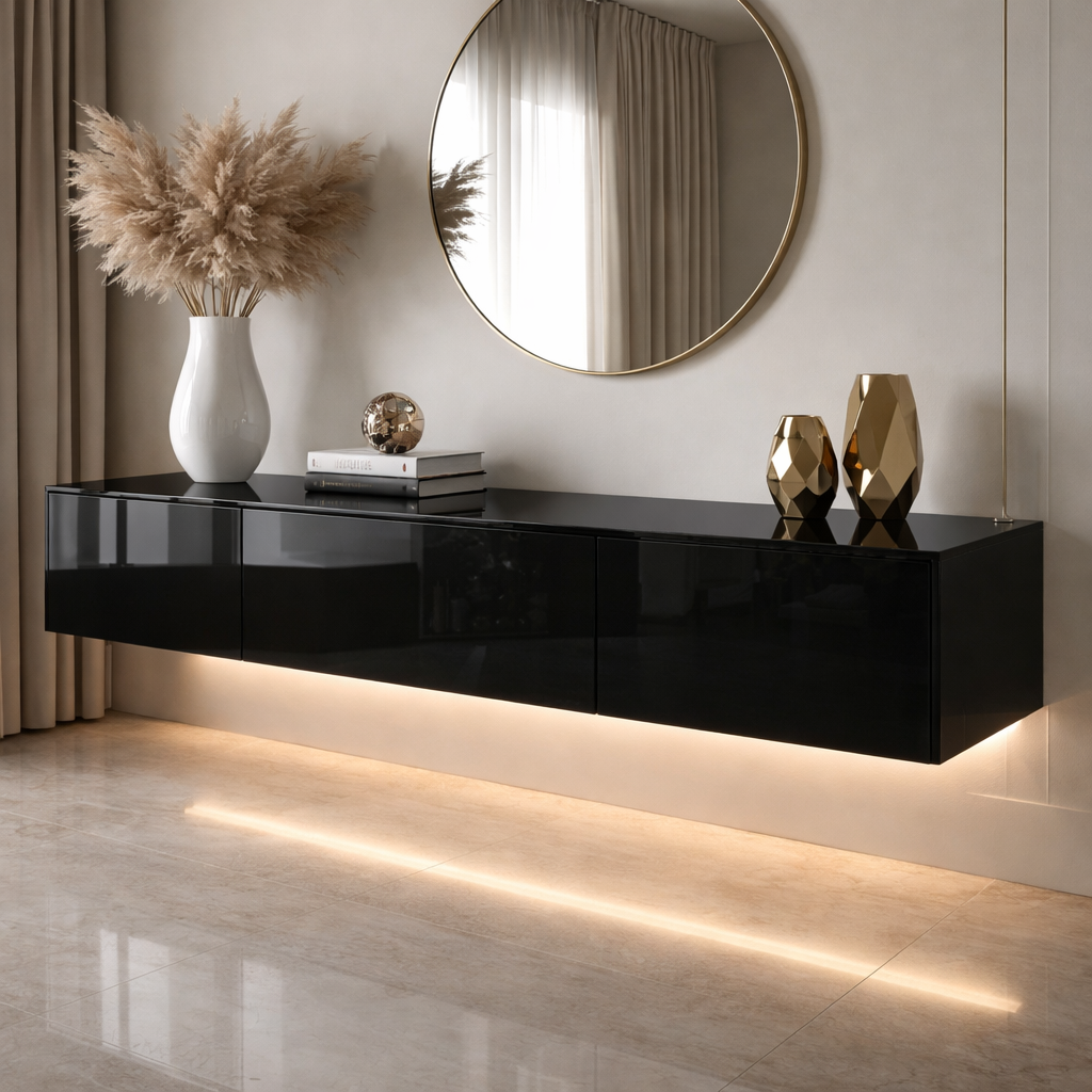 Глянцевая подвесная тумба под телевизор черная "Black Gloss Pro", 160х40 см можно приобрести в интернет-магазине Lokos с доставкой или самовывозом по Челябинской области или доставкой до ТК с дальнейшей отправкой во все регионы Российской Федерации и СНГ.