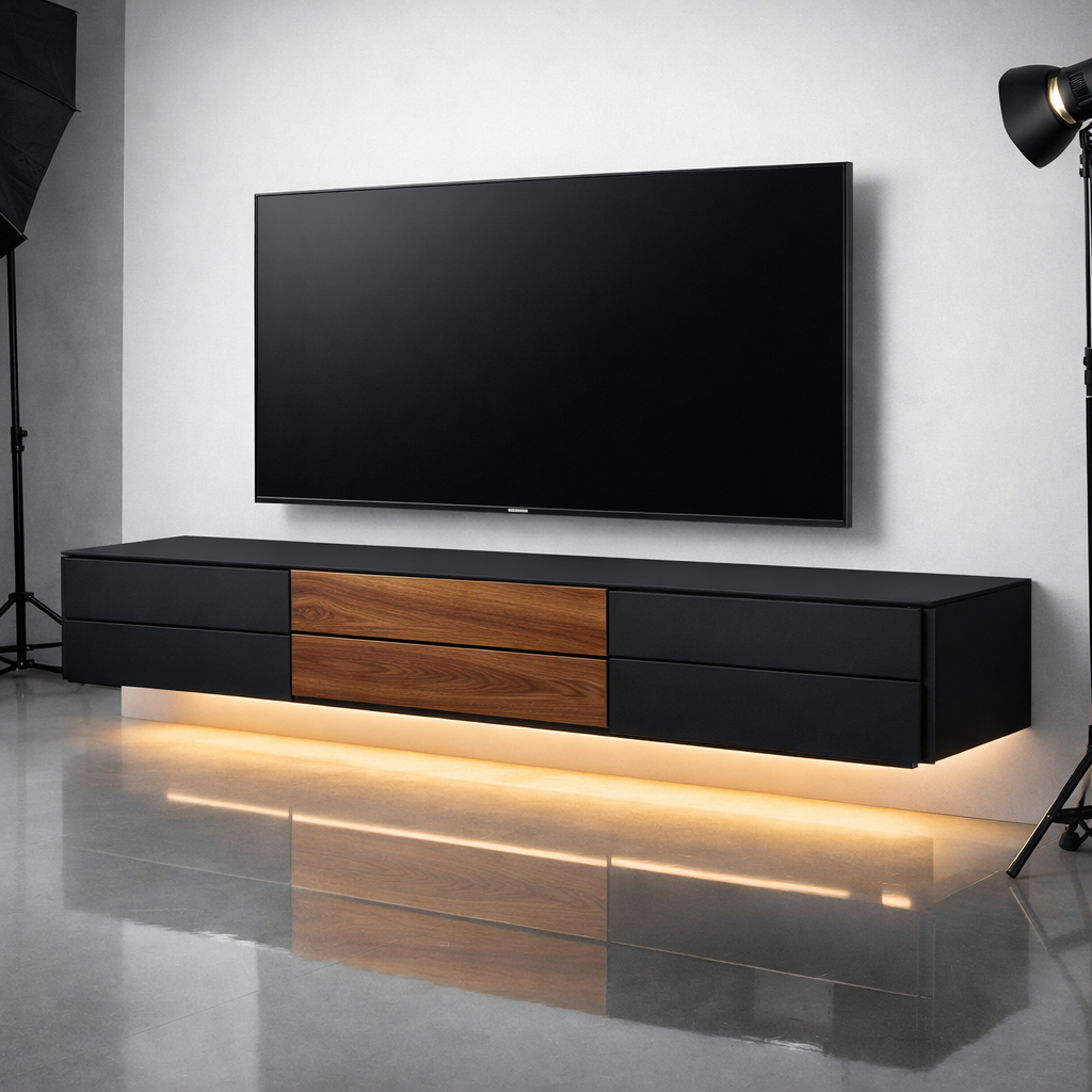 Тумба под телевизор подвесная черная матовая с вставкой под дерево "Contrast Wood", 160х40 см можно приобрести в интернет-магазине Lokos с доставкой или самовывозом по Челябинской области или доставкой до ТК с дальнейшей отправкой во все регионы Российской Федерации и СНГ.