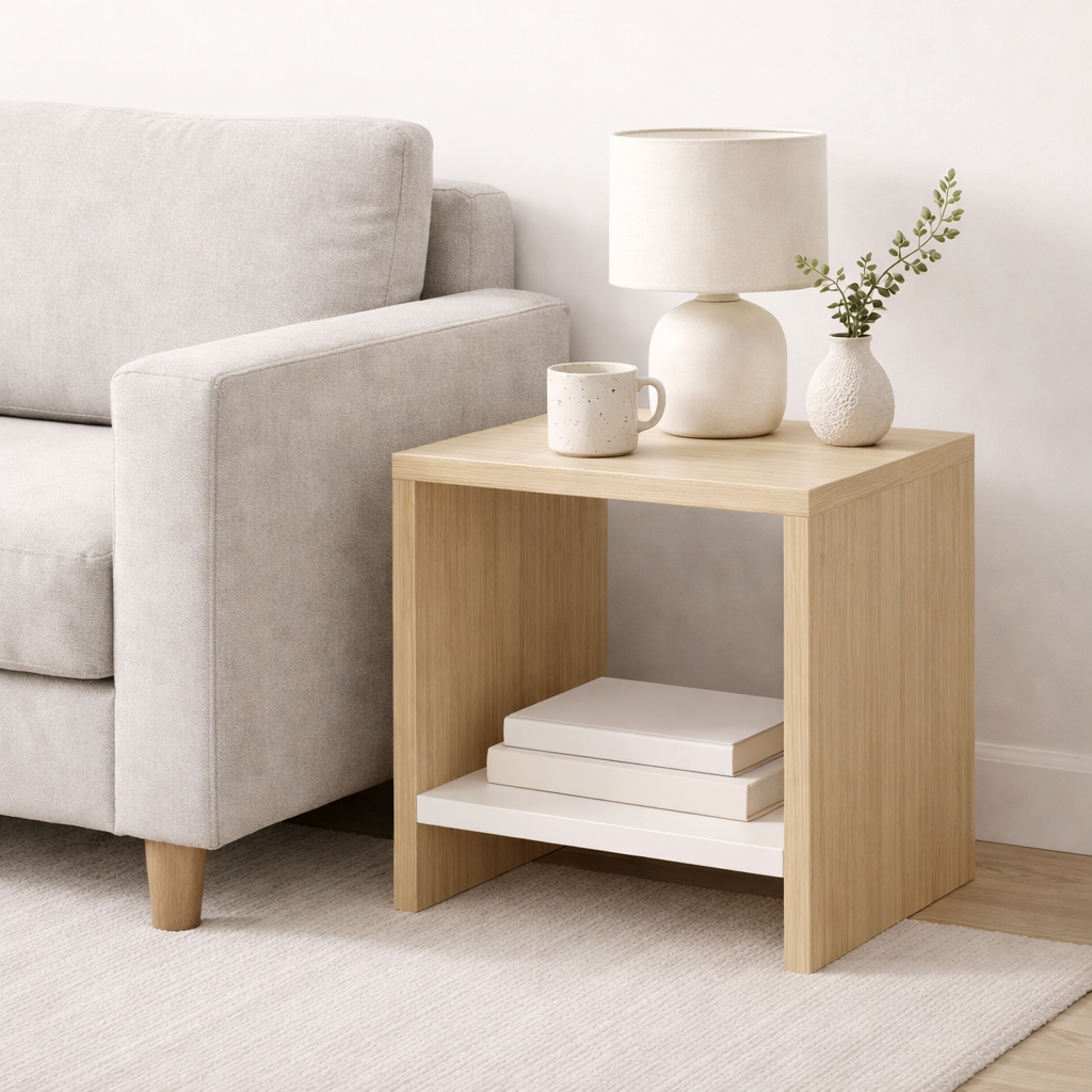 Компактная тумба Mini Base для гостиной с нижним ярусом дуб+белый 40×50см можно приобрести в интернет-магазине Lokos с доставкой или самовывозом по Челябинской области или доставкой до ТК с дальнейшей отправкой во все регионы Российской Федерации и СНГ.