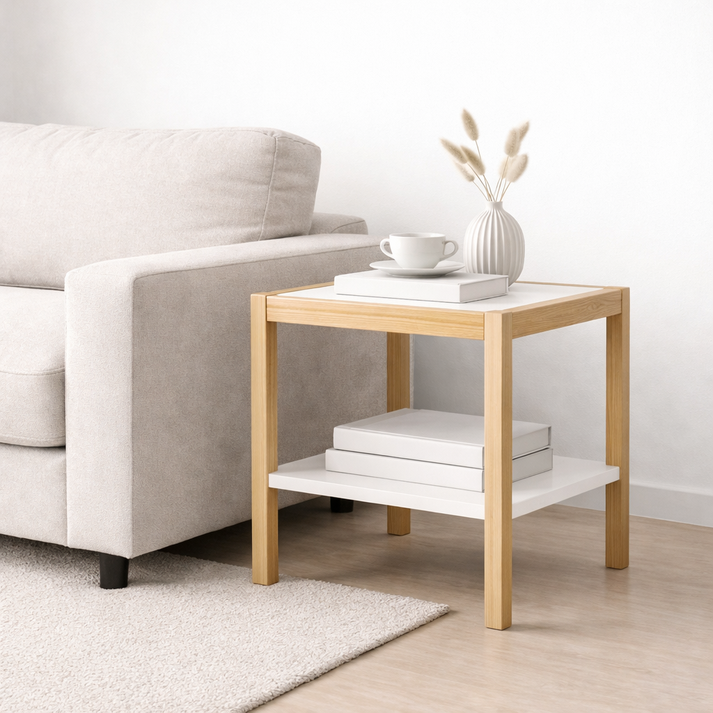 Приставной столик Scandi Lift лёгкий для гостиной дуб+белый 50×50см можно приобрести в интернет-магазине Lokos с доставкой или самовывозом по Челябинской области или доставкой до ТК с дальнейшей отправкой во все регионы Российской Федерации и СНГ.