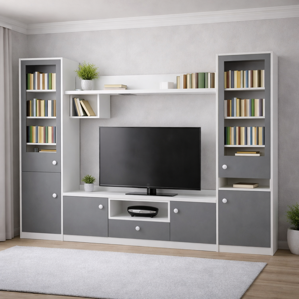 Компактная стенка под телевизор для небольшой гостиной серый белый "Nordic Compact", 200х200 см можно приобрести в интернет-магазине Lokos с доставкой или самовывозом по Челябинской области или доставкой до ТК с дальнейшей отправкой во все регионы Российской Федерации и СНГ.