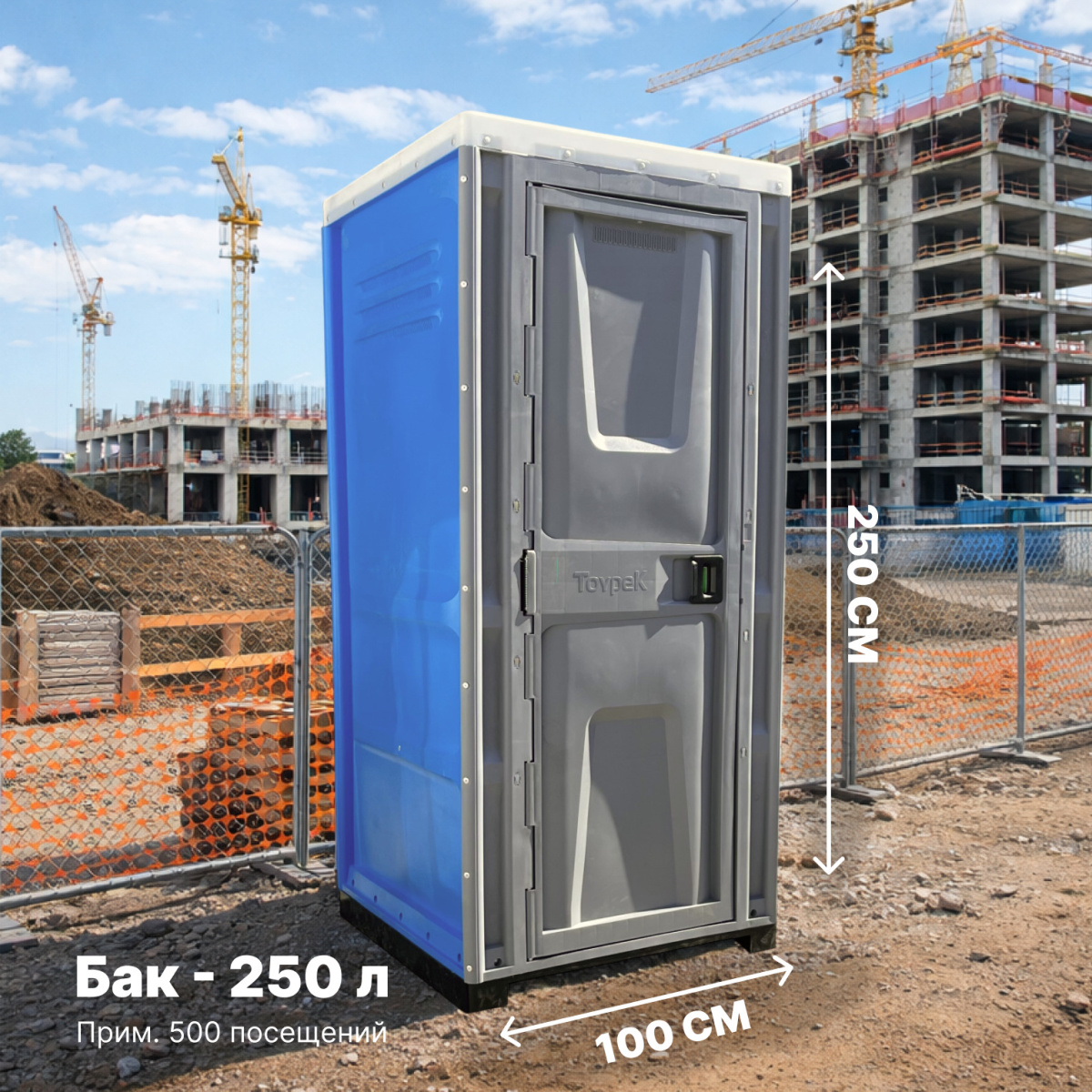 Синяя модель ToypeK предназначена для объектов с высокой интенсивностью использования. Это надёжная строительная биокабина, которая справляется с нагрузкой на стройплощадках и промышленных объектах.