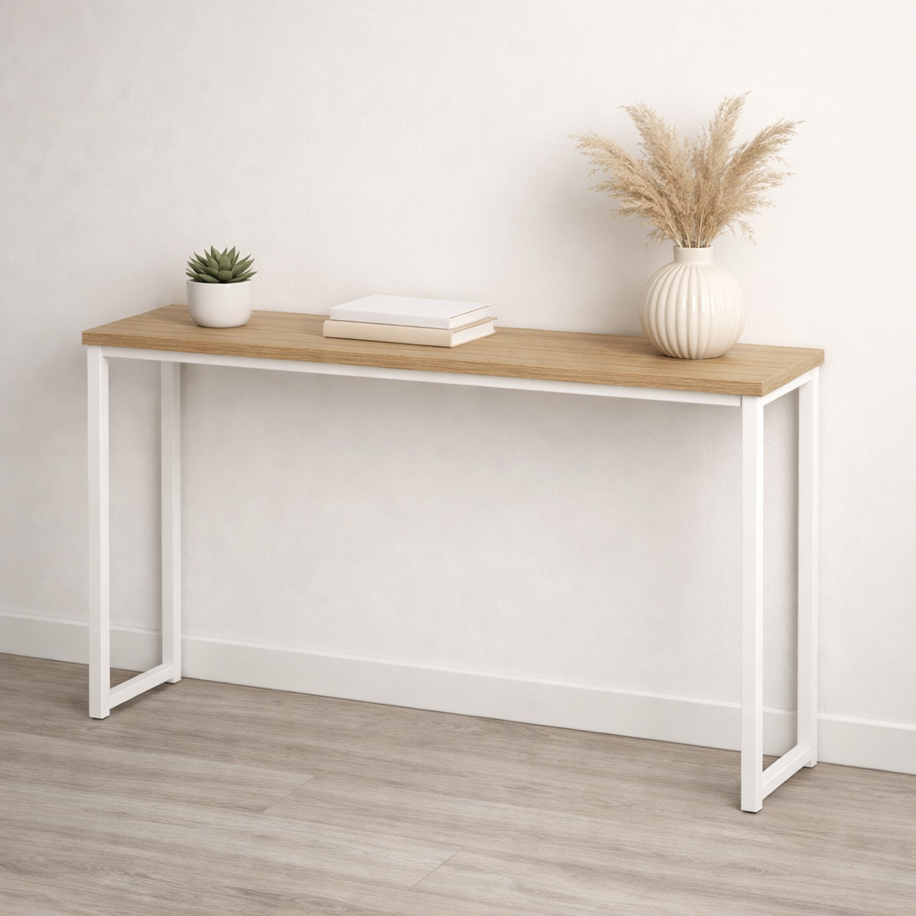Консольный стол белый лофт дуб 1400×350×800 мм можно приобрести в интернет-магазине Lokos с доставкой или самовывозом по Челябинской области или доставкой до ТК с дальнейшей отправкой во все регионы Российской Федерации и СНГ.
