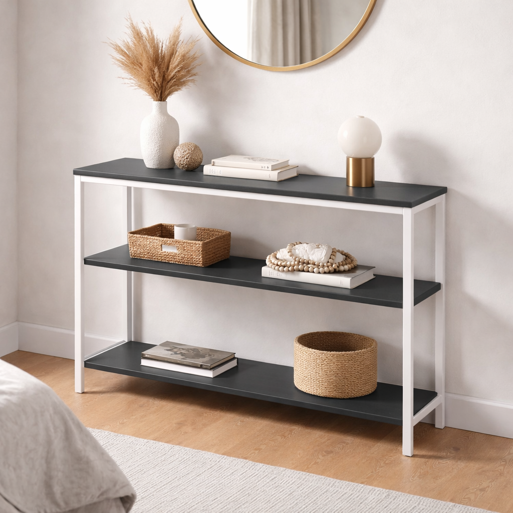 Черный консольный столик в стиле лофт 1600×400×900 мм можно приобрести в интернет-магазине Lokos с доставкой или самовывозом по Челябинской области или доставкой до ТК с дальнейшей отправкой во все регионы Российской Федерации и СНГ.