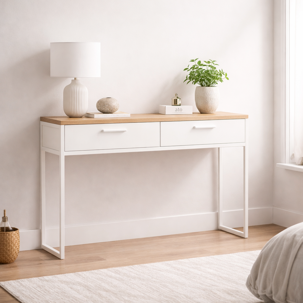 Консольный столик в прихожую с ящиками 1200×400×800 мм можно приобрести в интернет-магазине Lokos с доставкой или самовывозом по Челябинской области или доставкой до ТК с дальнейшей отправкой во все регионы Российской Федерации и СНГ.