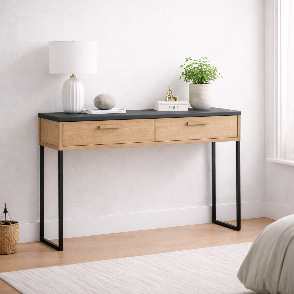 Консольный стол дуб с ящиками 1200×400×800 мм можно приобрести в интернет-магазине Lokos с доставкой или самовывозом по Челябинской области или доставкой до ТК с дальнейшей отправкой во все регионы Российской Федерации и СНГ.