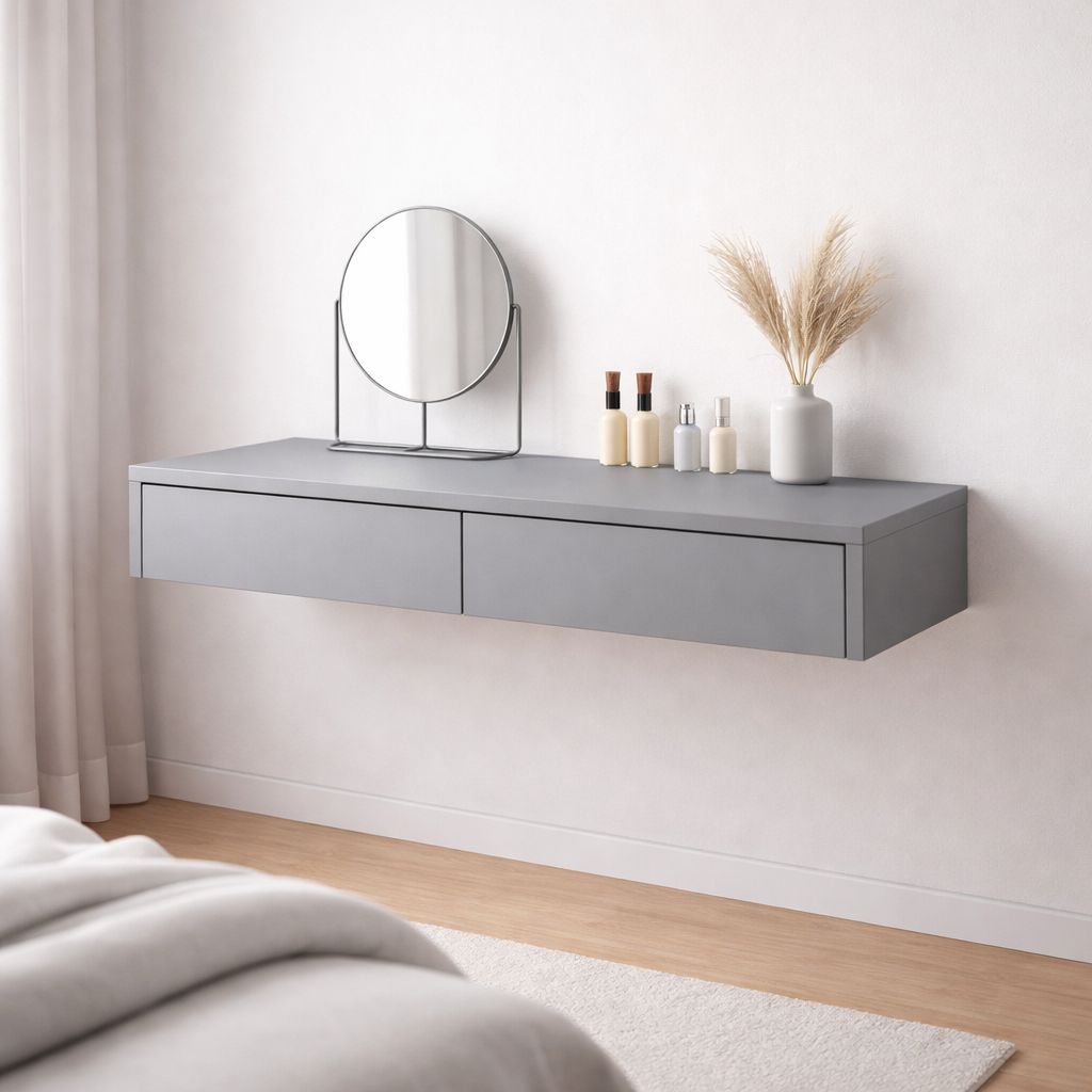 Подвесной столик для макияжа в спальню 80 см серый можно приобрести в интернет-магазине Lokos с доставкой или самовывозом по Челябинской области или доставкой до ТК с дальнейшей отправкой во все регионы Российской Федерации и СНГ.