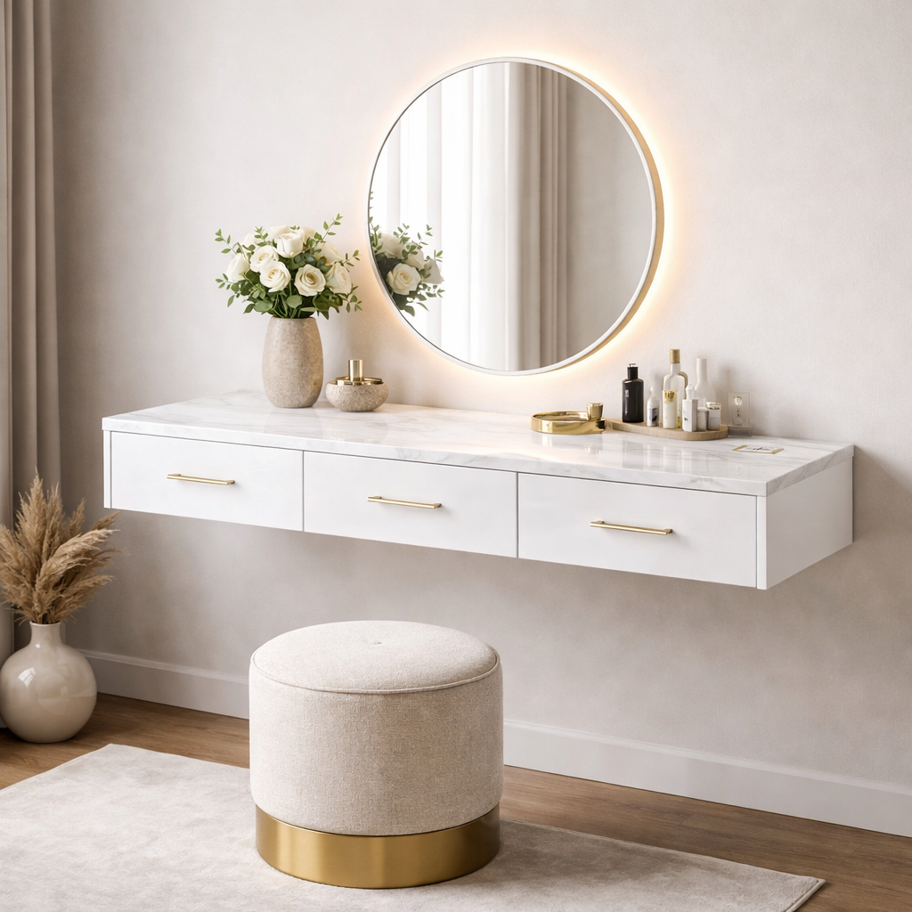 Навесная консоль для макияжа с мраморной столешницей белая можно приобрести в интернет-магазине Lokos с доставкой или самовывозом по Челябинской области или доставкой до ТК с дальнейшей отправкой во все регионы Российской Федерации и СНГ.